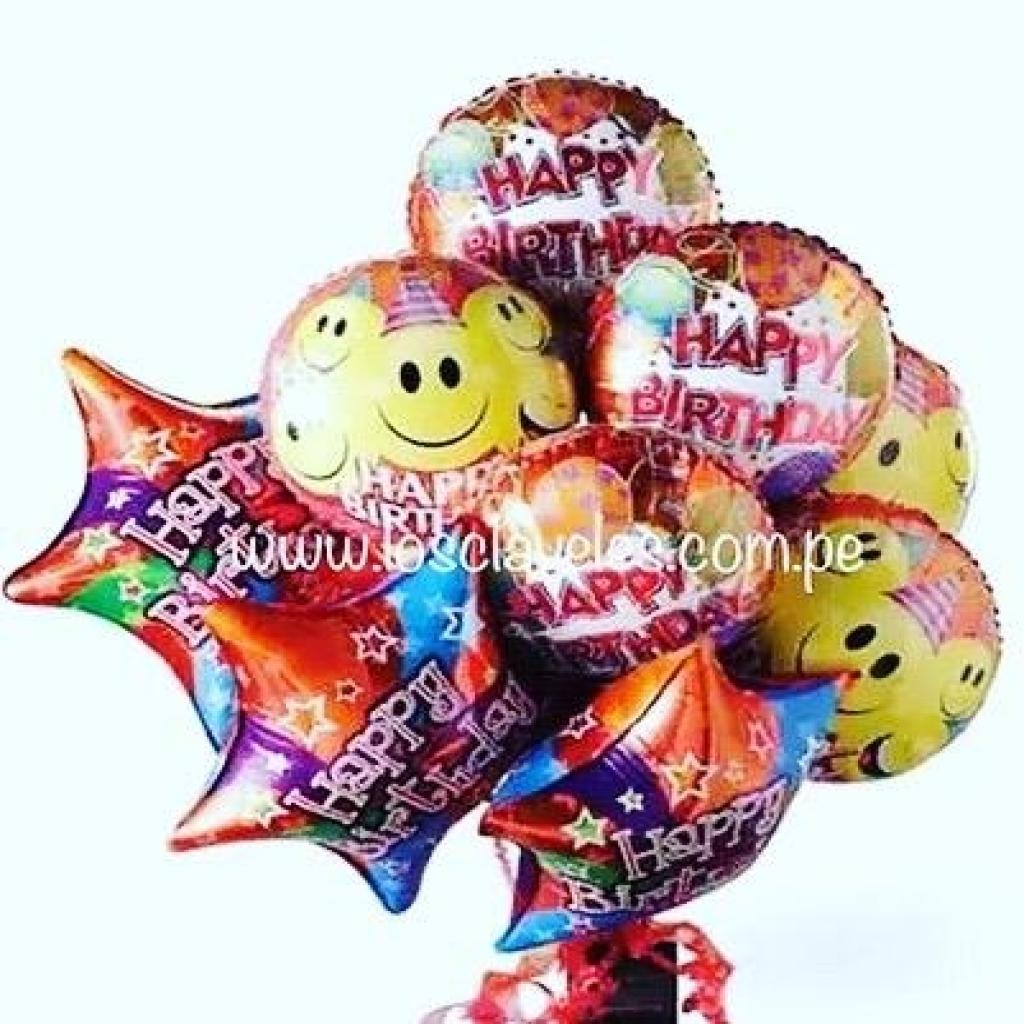 Arreglo de Globos Feliz Cumpleaños 6 Unidades $ 35.00