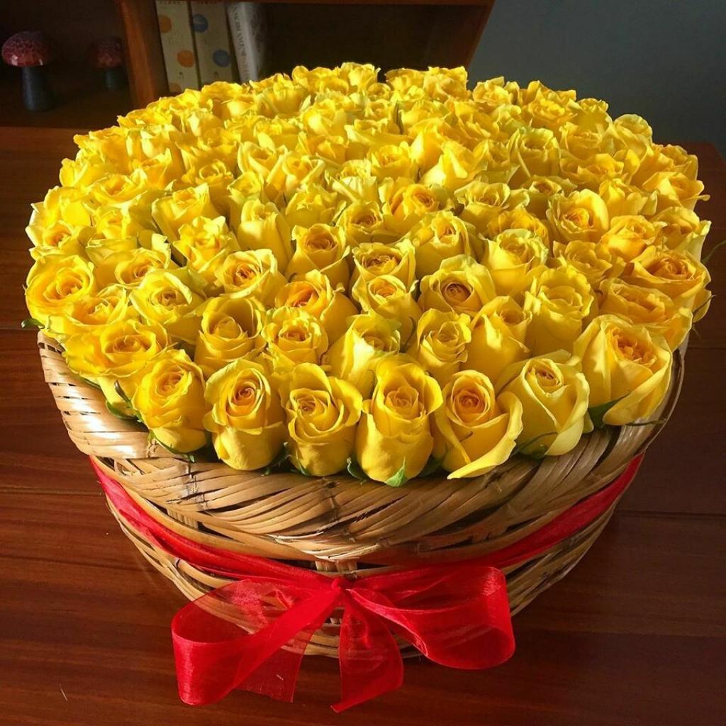 Canasta Cilíndrica de Rosas Amarillas Premium x100/200/300